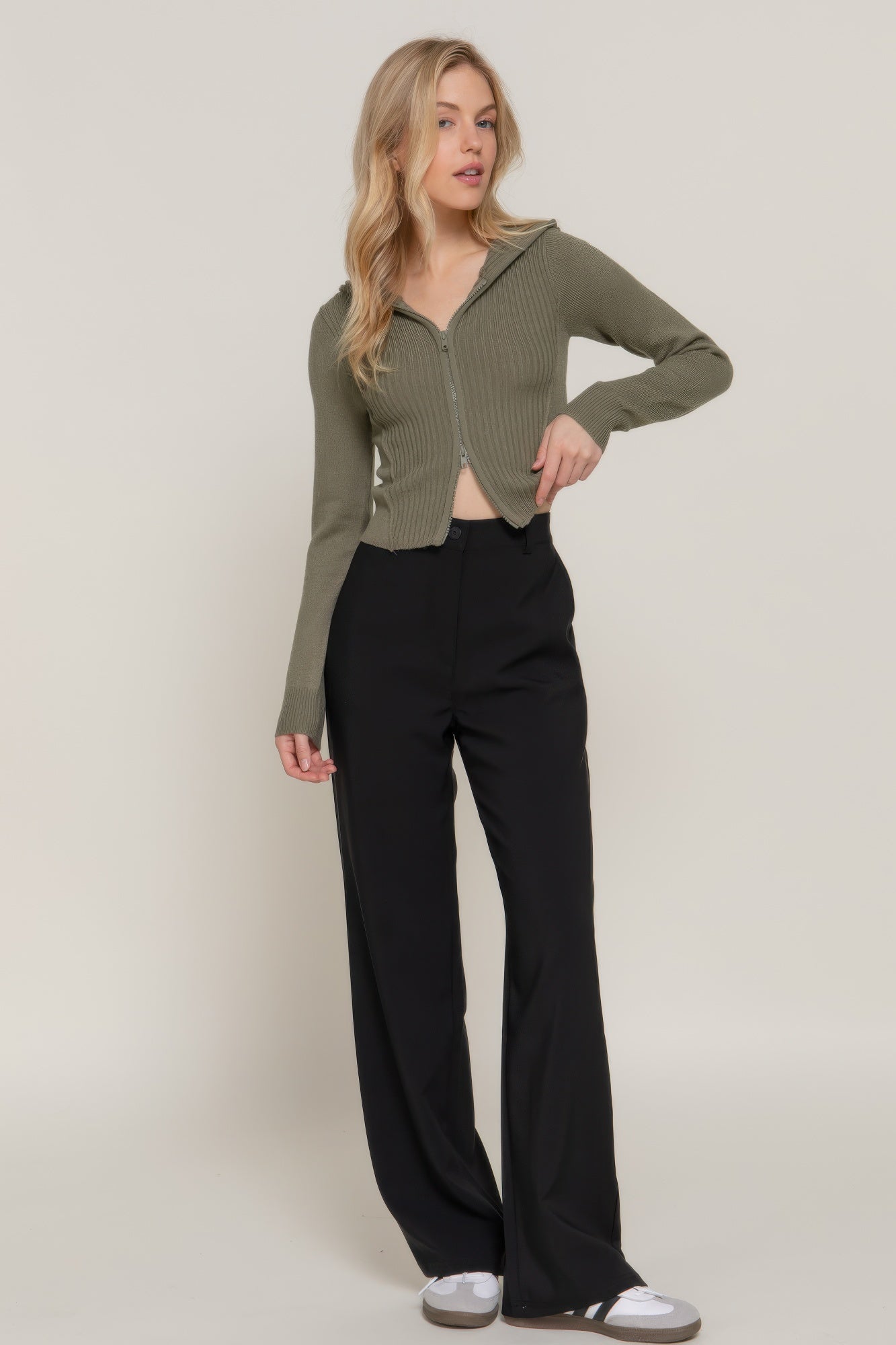 Add the 2-Way Zip Closure Sweater Hoodie Cardigan in Light Olive to your cart today and enjoy the perfect blend of comfort, warmth, and style!