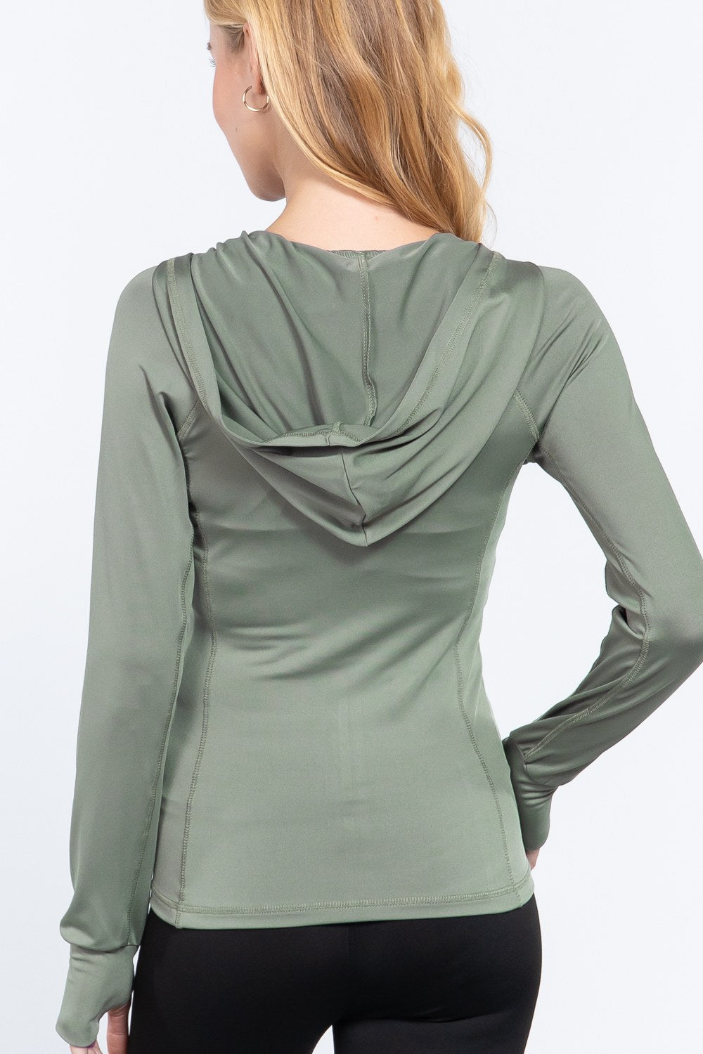 Revitalize your activewear style with our Long Sleeve Hoodie Workout Track Jacket in Sage Green. Add it to your cart now and experience the perfect fusion of fashion and functionality!