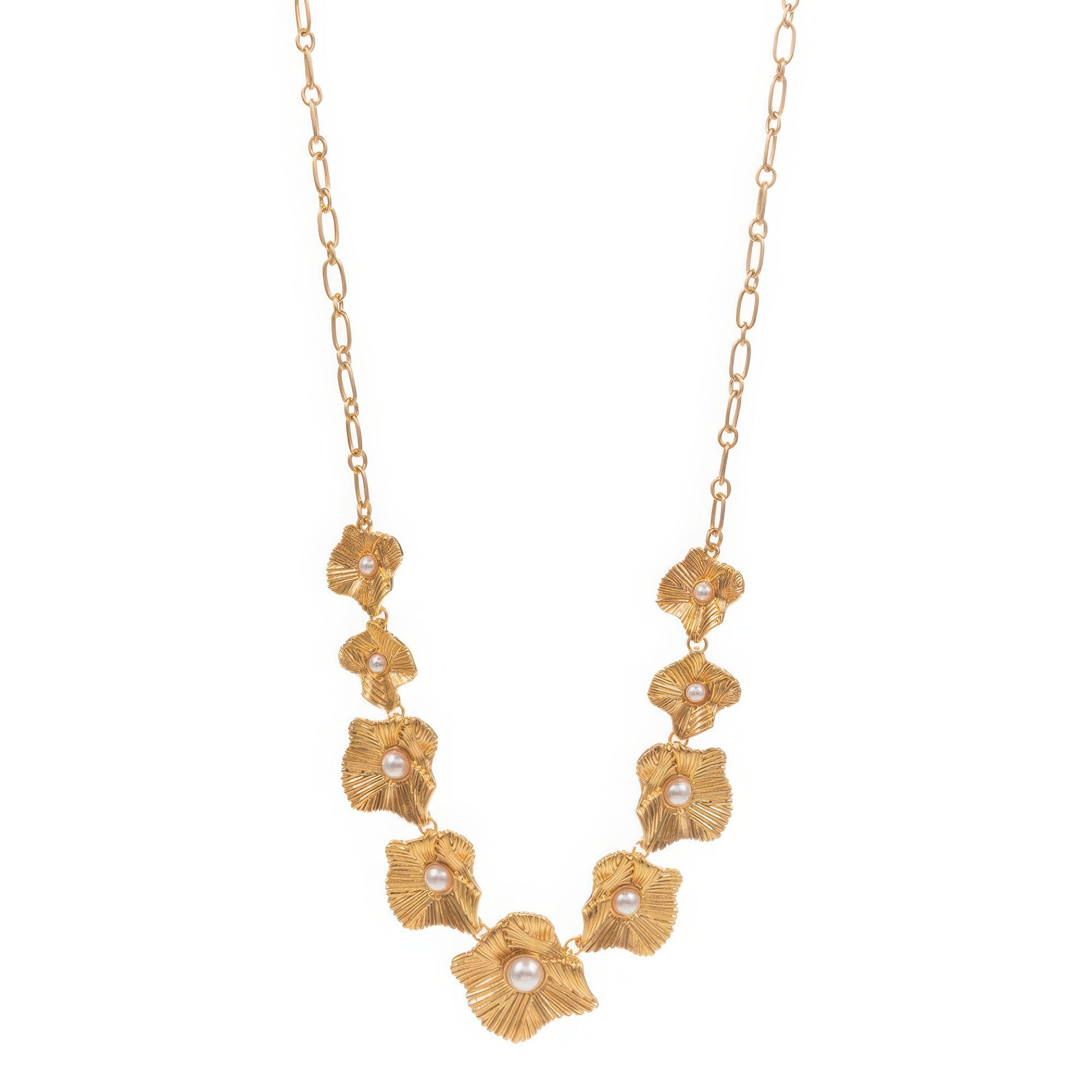 Material: Crafted in gold, the necklace offers a luxurious and radiant finish that complements the delicate pearl accents. The combination of gold and pearls adds a touch of glamour and refinement to your ensemble.