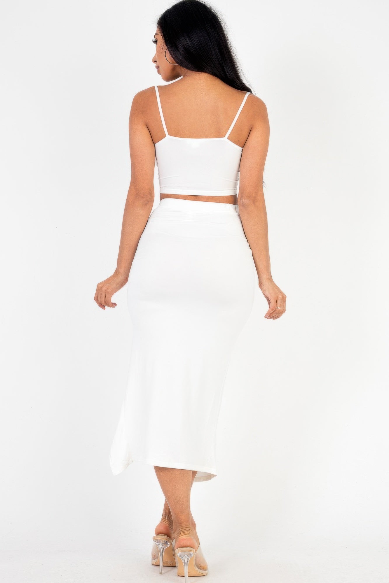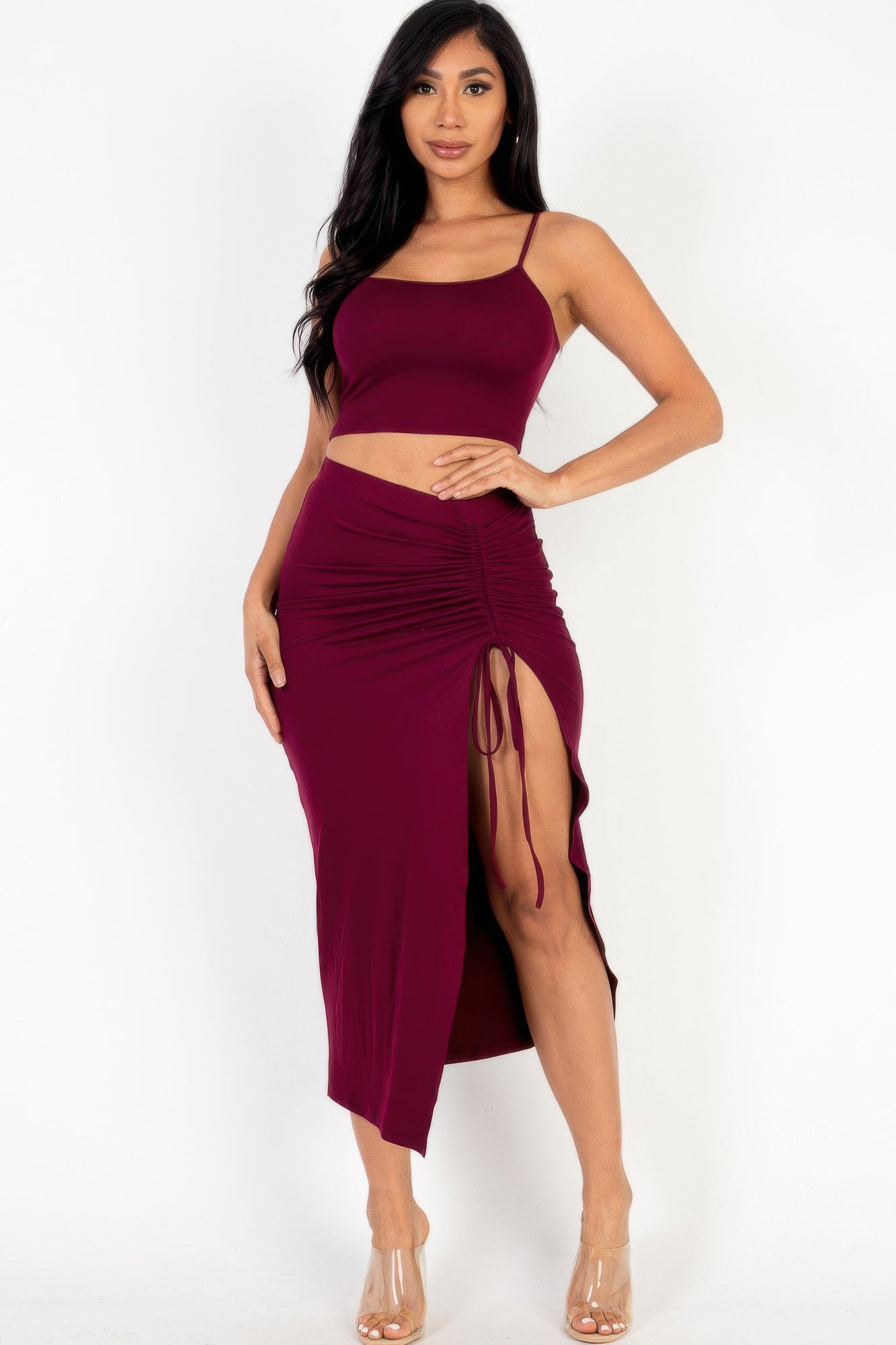 Why Choose Cami Crop Top & Ruched Side Split Hem Midi Skirt Set