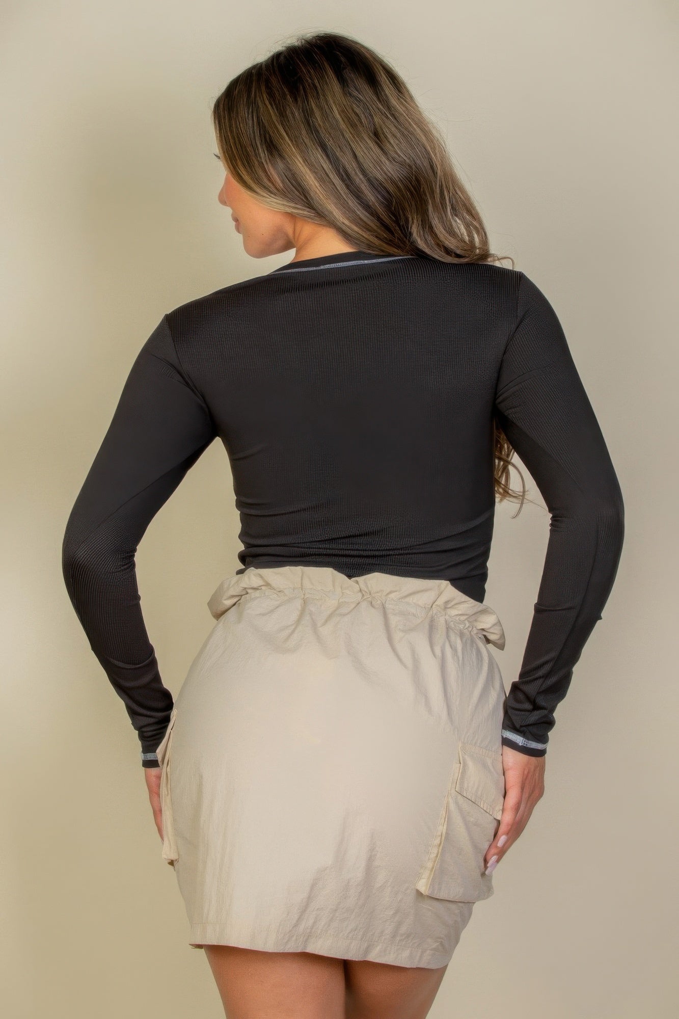 Soft, medium-weight stretch rib knit fabric for a comfortable fit.